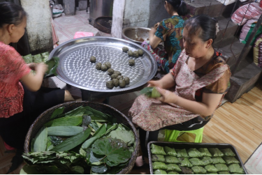 (图为桐叶糍粑制作过程 通讯员周文惠供图)