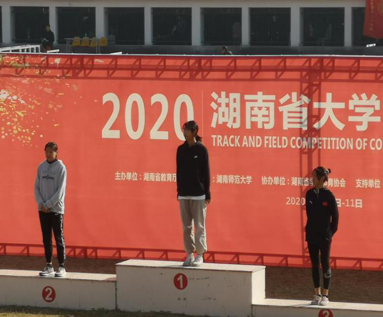 (文新通讯员:黄子欣 刘蓉融)为丰富大学生课余生活,提高大学生的综合素质,展现大学生积极向上的精神风貌风貌。11月6日至11日,由湖南省教育厅主办、湖南师范大学承办的2020年湖南省大学生田径比赛在湖南师范大学隆重举行。本届大赛吸引了来自全省的44所学校共576名运动员参加,其中我院共三人参赛,我院运动员赛出风格、赛出水平,再创佳绩!李娴婷荣获女子1500米冠军、女子800米第四名,颜皇获女子铁饼第三名、女子铅球第二名,郭紫玥获女子400米栏第六名、女子4×400米接力第四名。