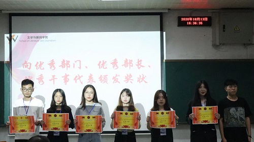 第十九届学生会主席罗舒晴进行述职,汇报第十九届院学生会工作以及取得的优异成绩。接下来团委书记管胜昔老师宣读表彰决定,向亚洲精品国产精品第十九届学生会优秀部门、优秀部长、优秀干事代表颁发奖状并合影留念,向亚洲精品国产精品第二十届学生会主席团、部长颁发聘书并合影留念。接着,学生会各部门负责人通过PPT演讲等方式逐一介绍各部门的概况。第二十届学生会团委第一副书记赵子杰带领第二十届学生会全体成员宣誓,“打造魅力团队,展现文新风采”是我们矢志不渝的追求,“文新文新,文艺双馨”是我们永恒的风采,“文以载道,薪火相传”是我们肩负的责任。第二十届学生会主席蔡雨婷发言,从四个方面系统地提出工作要领,并对全体成员提出期望。
