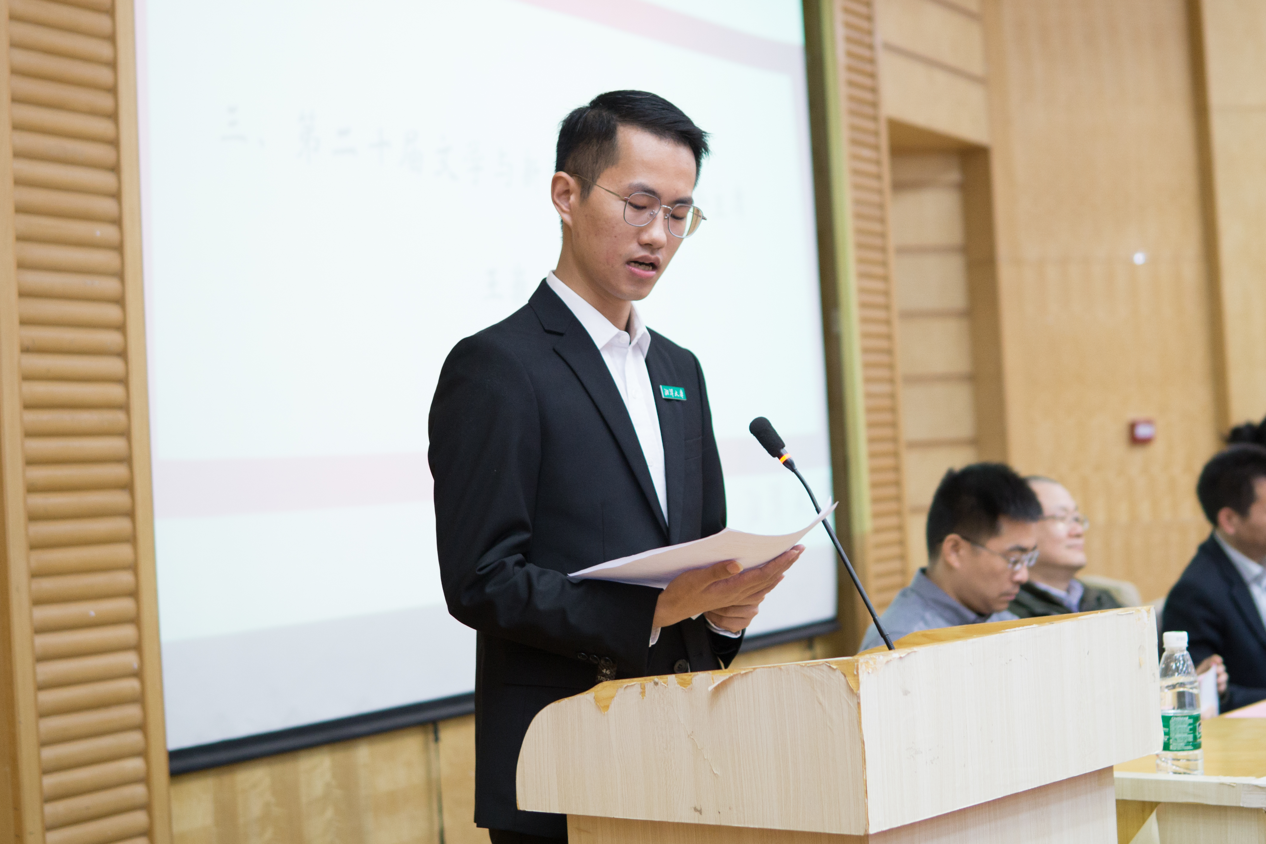 大会第二阶段,亚洲精品国产精品第二十届研究生团总支、研究生会换届大会。研究生辅导员林瑜老师宣读第二十届研究生团总支、研究生会学生干部名单;老师们为第二十届学生干部们颁发证书;亚洲精品国产精品第二十研究生会主席王巍发言,他从组织、宣传、学术和文体工作四个方面详细汇报了过去一年研会在赵猛书记和林瑜老师的指导下所取得的优异成绩,同时他也期待在新一届成员的加入和助力下,研会能更好地服务师生,做出更好的成绩。