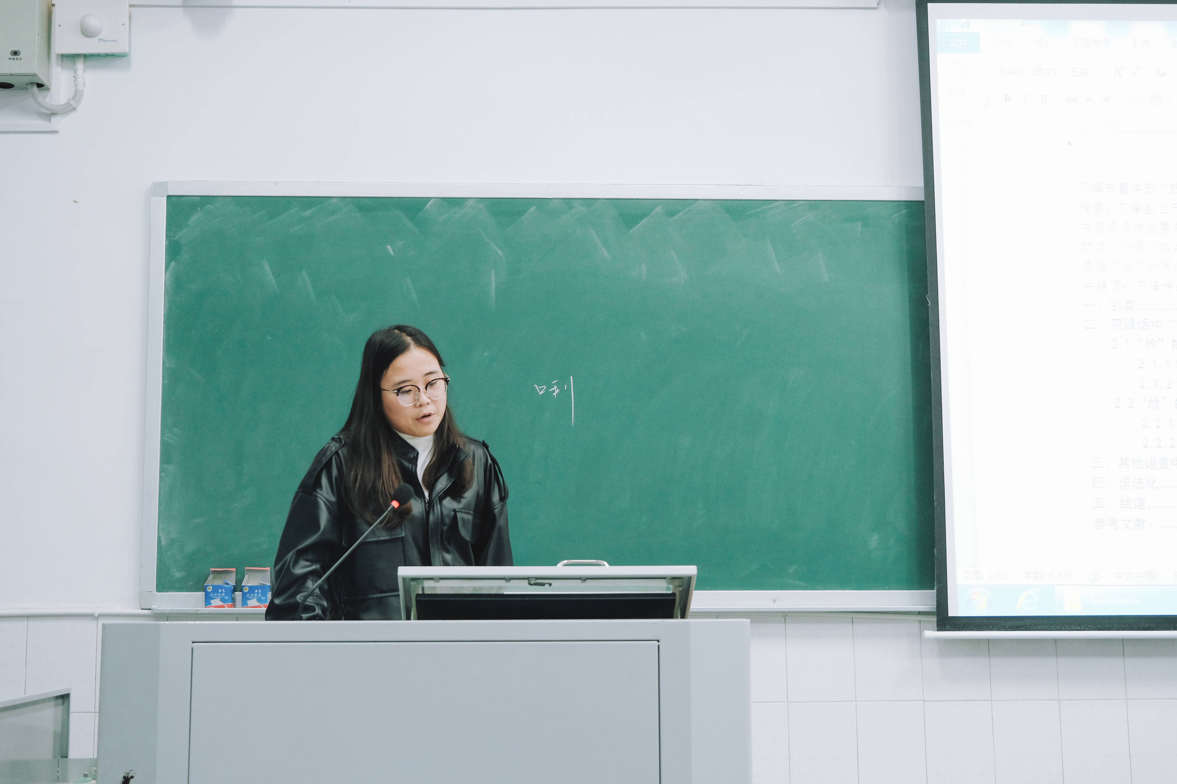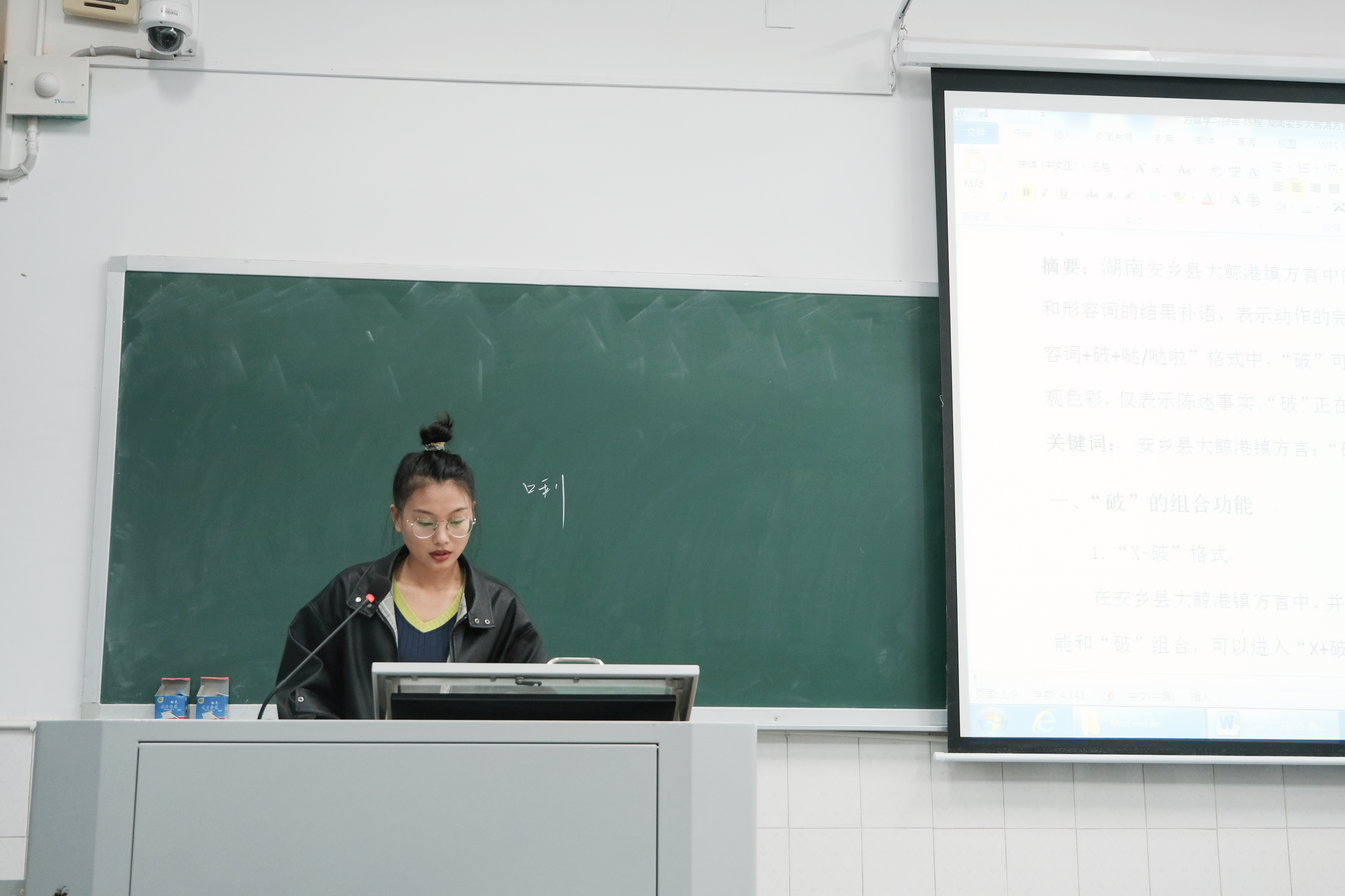 2019级语言学硕士研究生赵练红报告的论文是《双峰方言中的“放”》。文章主要从双峰方言中的“放”的具体地理位置、历史来源和古义;“放”的功能和语义;其他方言或民族语中的“放”;以及“放”的语法化等四个方面介绍。