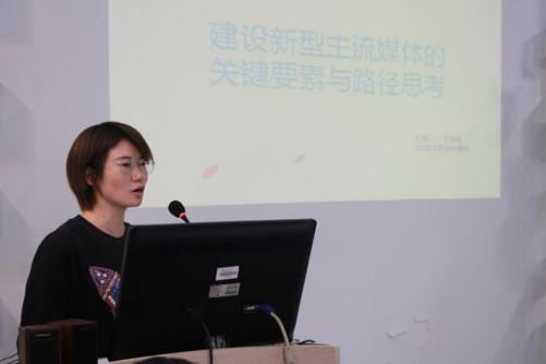 随后,来自文新院的王慧敏、王新雨、江凌波、贺勇、曹超群以及卜晓瑾六位同学从如何建设新型主流媒体、如何打通主流媒体与自媒体这一组舆论场,到从湘大视角看高校媒介体系及意识形态建设等不同的视角展开学术分享。本次论坛充分发挥学生的积极性和主体作用,以学生主持、学生主讲、学生点评、教师复评的形式进行。首先是主讲人汇报自己的论文观点,其次是其他主讲人或者是在场学生进行提问或者给出意见,最后是各位老师进行点评。