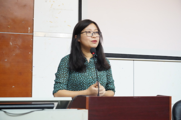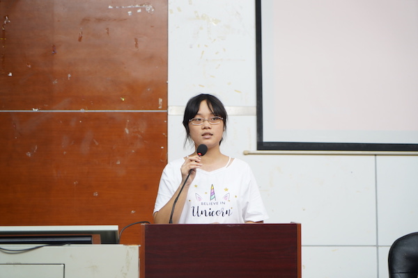 陈梦兮老师代表全院教师在开学典礼上发言。从大学学习与高中学习的不同点出发,陈老师向同学们分享了一些大学学习的经验。“高中阶段的学习,侧重锻炼记忆、理解和运用能力;大学阶段的学习,同学们要着重培养自己观察、分析、表达的能力。”以《庄子·北冥有鱼》为例,陈老师从观察和分析问题两个方面启发大家,观察是第一步,提出问题后要学会分析问题,要学会站在巨人的肩膀上思考问题。陈老师强调,读书是一个能综合锻炼以上三种能力的方式,希望同学们能充分利用时间,养成良好的阅读习惯。