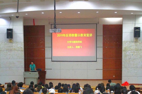 (文新通讯员:余艺、钱安阳)为提高大一新生对邪教组织的辨别防范能力,普及消防安全相关知识,9月18日晚,亚洲精品国产精品党委副书记周鹏飞、湖南省普消消防教官李进军于逸夫楼二报为19级新生开展了反邪教警示宣讲活动和消防安全知识讲座,给新生们上了意义重大的一课。