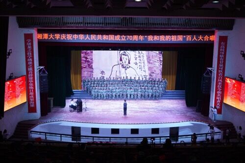 (文新院通讯员:秦凡森 陈谊姝)10月4日晚,“我和我的祖国——湘潭大学庆祝中华人民共和国成立70周年”百人大合唱在俱乐部隆重举行。湘潭大学副校长刘建平、学生工作部(处)部长谢罗奇、副部长马卿、校团委书记魏晓琳、吴彬彬、信用风险管理学院院长顾敏康教授、湘潭大学亚洲精品国产精品党委书记赵猛,以及各院系党委副书记、团委书记出席本次活动,湘潭大学艺术团指导老师彭靓,湘潭市第二中学音乐教师纪志辉,湘潭市合唱协会副会长邓军担任本次大赛评委。