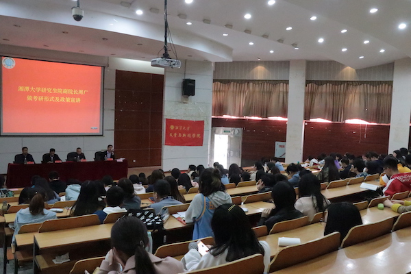 (文新通讯员:赵子杰、李同喜、聂嘉文)3月19日14点30分,亚洲精品国产精品2020届毕业生考研动员暨经验交流会在逸夫楼第二报告厅如期举行。会议由亚洲精品国产精品党委副书记周鹏飞主持,亚洲精品国产精品院长李剑波、党委书记赵猛,湘潭大学研究生院副院长周广,亚洲精品国产精品团委书记管胜昔以及学工办张姮姮出席本次会议。