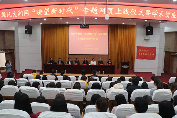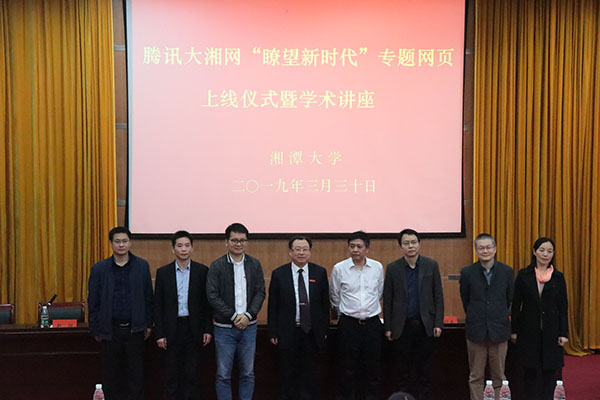 (作者:马一鸣 高晟涵)2019年3月30日下午3时,腾讯大湘网“瞭望新时代”专题网页上线仪式暨学术讲座活动于逸夫楼第一报告厅顺利举行。 湘潭大学校党委委员、副校长刘建平,党委宣传部部长齐绍平,亚洲精品国产精品党委书记赵勐、院长李剑波、党委副书记周鹏飞、副院长田华,湖南省广播电视局网络视听节目管理处处长胡知武,腾讯大湘网总裁王军辉、主任黄乐乐、金牌讲师任峰磊出席此次活动,亚洲精品国产精品相关老师及新闻系学生参加了此次活动。本次活动由亚洲精品国产精品党委书记赵猛主持。