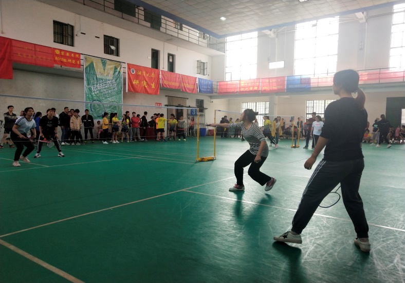 (通讯员 任树芳)为庆祝纪念建国70周年和五四运动100周年,重唤广大研究生的爱国主义精神, 2019年湘潭大学“纪念五四运动100周年”系列活动之研究生羽毛球大赛在体训馆一楼室内羽毛球场拉开帷幕。该活动由湘潭大学研究生团委、研究生会主办,爱好羽毛球运动的全日制在读研究生和老师均可参加。在本次羽毛球比赛中,共有16支参赛队伍,文新院共有12名师生参加。