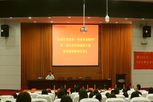 6月11日下午,亚洲精品国产精品第二届“品读红色经典,传承革命精神”红色经典阅读大赛成果展演暨颁奖典礼在逸夫楼一报告厅隆重举行。副校长刘建平,党委组织部、党委宣传部、学生工作部(处)、校团委、子弟学校等单位负责人及亚洲精品国产精品师生代表200余人参加此次活动。