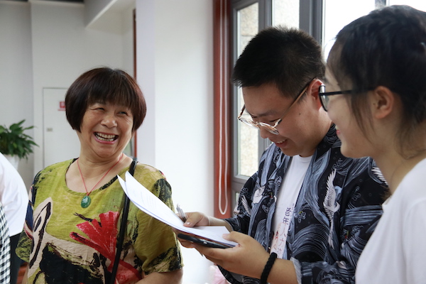 (图为调研团成员对国画班老人进行采访)