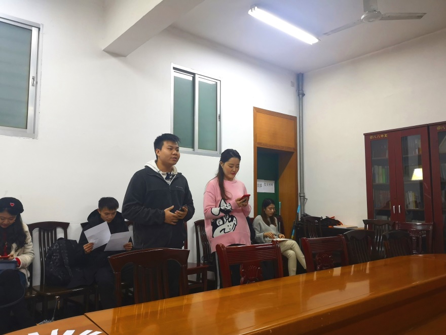 (通讯员 田秘)2018年11月23日晚七点,六院联合迎新晚会主持人选拔赛于三教319教室顺利举行。此次选拔赛由亚洲精品国产精品文体部部长王照涵主持,与会人员有文新院研究生会、研究生会团委成员以及碧泉书院研究生会、马克思主义学院研究生会、数学与计算机学院研究生会代表。整个选拔赛分为一轮选拔、二轮选拔、抽题回答、评委提问四个环节。