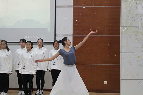 接踵而来的是同学们期盼已久的班级大赛环节。在各个班精彩节目展示之前是讲解员对各班班级成立发展过程、班服班徽的创意点、历经精彩活动的陈述,他们生动有趣的叙述让同学们重新回顾两个月来发生的点点滴滴:从天南海北汇聚而来的班集体,从相遇、相识再到相知。在这其中每个班级都体现了自身的特色:新闻二班风趣而又温馨的班级氛围;新闻三班团结友爱的集体风貌;中文三班得其三昧的古韵风骨;中文一班有鱼成鲲的浪漫志向;广告一班酷炫时尚的潮流作风;中文二班以梦为马的豪情壮志;广告二班统一完整的班级作风以及幽默的相处方式;新闻一班富有魅力的班级特色。文新院各班的介绍让人一览18级新生风采,感悟千禧宝宝的独特风采。