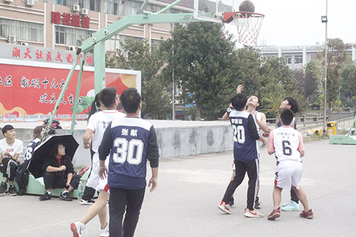 比赛第一节,球员们个个激情四射,精力充沛。17新传班33号球员彭珊珊率先进球得四分,紧接着便是22号球员张兆麟得六分,一六广告班选手毫不示弱,九号球员叶文倩一举拿下五分。最后,第一节比赛落下帷幕,17新传班以10:5的优势略微领先。