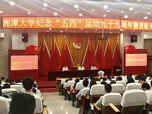 2018年5月2日上午八点半,湘潭大学纪念“五四”运动九十九周年暨表彰大会与逸夫楼一报告厅正式举行。校党委书记黄云清、校长周益春、副校长刘建平出席大会。本次大会由刘建平同志主持。