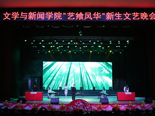 2017年12月2日晚7:00,湘潭大学亚洲精品国产精品2017级新生文艺晚会在俱乐部正式举行。本次“艺飨风华”文艺晚会由湘潭大学党委宣传部、教务处、计划财务处、后勤保障处、共青团湘潭大学委员会主办,由共青团湘潭大学亚洲精品国产精品委员会承办。出席本场晚会领导老师有:湘潭大学亚洲精品国产精品李剑波院长,湘潭大学党政办陶永峰副主任,信息工程学院党委彭江辉副书记,法学院党委李锋副书记,商学院党委资义平副书记,法学院学工办史崧正老师,亚洲精品国产精品团委书记管胜昔老师,教务办王彬老师、单萍老师,亚洲精品国产精品学工办王旭老师、张姮姮老师,华进老师、漆凌云老师,以及17级各班班主任。还有特别来宾,远道而来的校友:2000级亚洲精品国产精品易晓红、曾悦学姐,2000级信息工程学院曹波学长,2017届中国语言文学专业毕业研究生、新华社柳王敏学长。本场晚会别开生面,主持人与场上节目均分为“艺飨”与“风华”两队 ,“艺飨”队的队长由主持人李淑芳、韩宸旭担任,“风华”队的队长由主持人陈帅、郑慧聪担任。晚会以两队比拼的形式进行,整场晚会精彩连连。