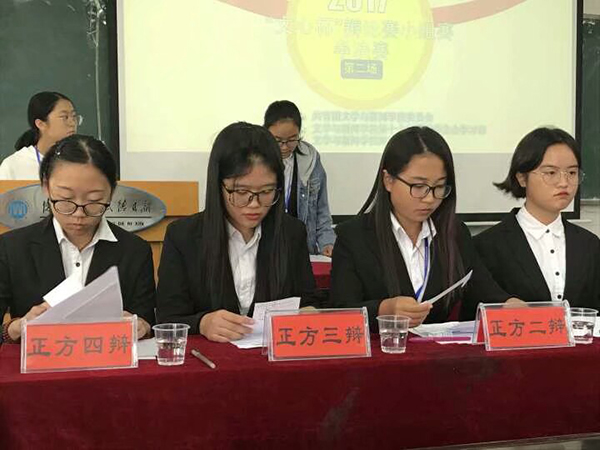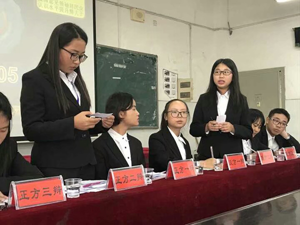 接下来是令人期待的自由辩论环节,此环节双方辩手轮流回答并互相询问。正反双方辩友质询快速而激烈,回答简洁有力。双方提出问题的一针见血,回答也露不出丝毫破绽。两方据理力争,快节奏的答辩,让场外观众热血沸腾。