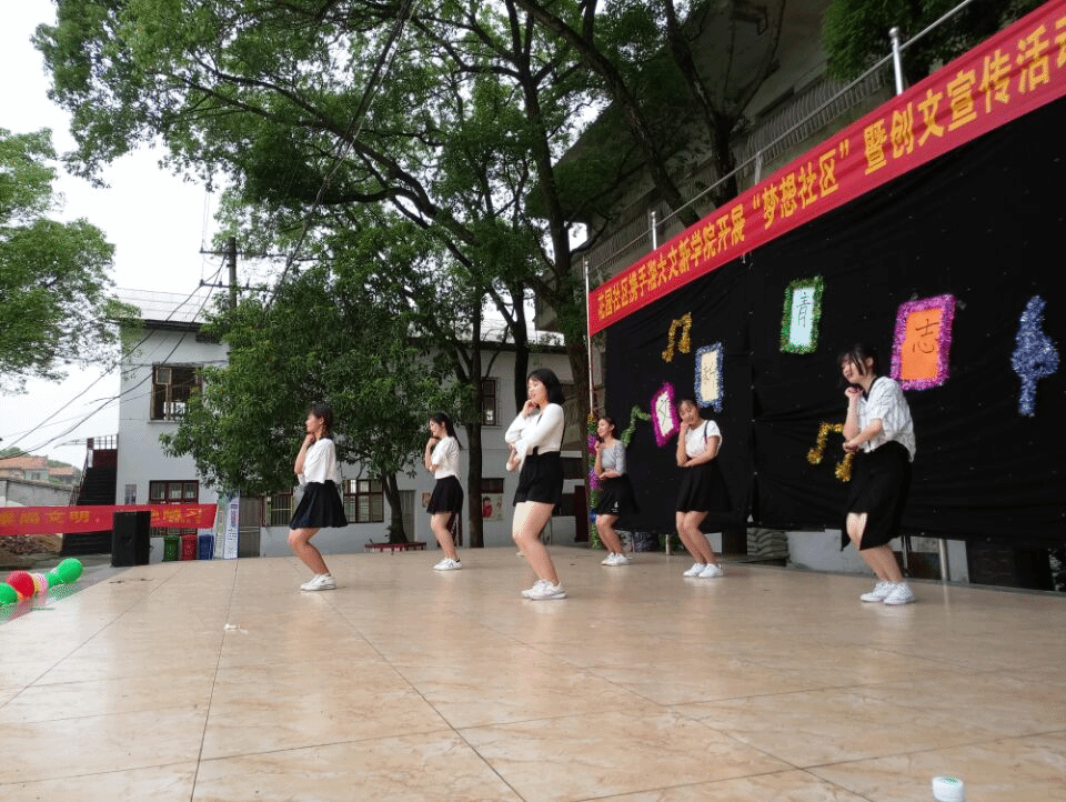 随后,来到了第二轮“萝卜蹲”游戏环节,孩子们依然热情高涨。互动结束后,仲娴和刘美辰共同带来歌曲《大鱼》,观众们一同再次走进了电影《大鱼海棠》的情景中,余音绕梁。轻盈灵动,风姿绰约,文新院舞蹈队的大长腿姑娘们带来了舞蹈《神的随波逐流》,她们肤白貌美、动作整齐划一,台下观众们掌声不断。“渔舟唱晚,响穷彭蠡之滨”,湘潭大学器乐协会献上的一曲《渔舟唱晚》,使观众们一同感受千年前王勃的诗意境界,描绘了一幅天乐人合一的绝美画卷。最后,伴随着青志部的全体人员的合唱《爱因为在心中》,本次大型梦想社区活动圆满结束。