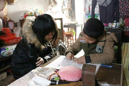 人生如戏,戏如人生,你执黑子,我执白子。小朋友的爸爸妈妈外出打工,留下小朋友于爷爷奶奶一起生活。志愿者到的时候小朋友正在写作业,表情极其认真。看到哥哥姐姐们到了,他眼里溢出笑意。小朋友写完了作业,与志愿者下起了五子棋,小朋友拿出的棋子的数量很有限,棋盘也很破旧,皱皱巴巴的,但小朋友却很宝贝它。下了几盘,小朋友都赢了,志愿者也说没有让着小朋友,是小朋友凭借自己的实力赢的!志愿者们都希望小朋友可以感受不到生活的悲伤,只要记得有很多人是爱他的,他不会孤单,更不用害怕。