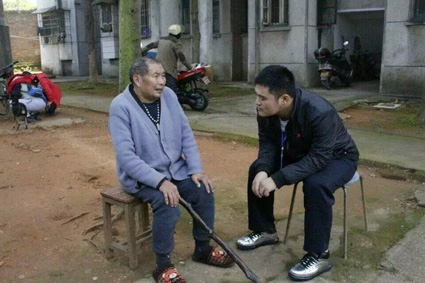 爷爷行动不是很方便,但还是坚持每天早上去外面散散步。看电视是爷爷每天都要做的事情,爷爷说最爱看京剧,新闻也一定要看。当志愿者提到湘潭这些年的发展时,爷爷告诉我们,湘潭还是不错的,湘潭大学也办的很好!