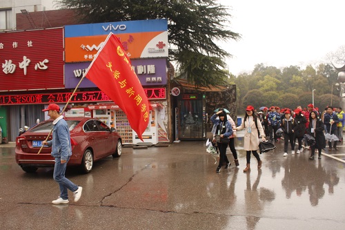 下午一点左右,参加此次活动的73名青年志愿者们便在俱乐部门前聚集,青年志愿者实践部干事进行人员统计分组,随后派发志愿者勋章和工作牌以及统一的红色帽子。紧接着,全体人员在俱乐部门前拍摄合照,一切准备就绪后“湘江之行”活动正式开始。