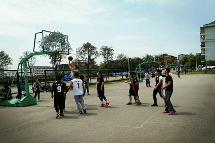 本次竞赛是小组赛的强强交锋,也是大二之间的友谊比赛。竞赛开端,身着红色的广告队就表现出强烈的取胜愿望。他们借着身高优势对新闻队发起猛攻。新闻队无法获得进攻上的优势,只得防卫。竞赛第一节的比分可是紧紧相逼啊。