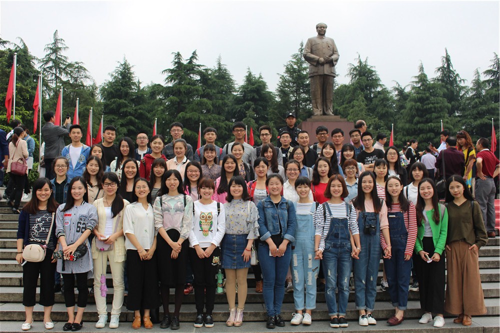随后的参观环节,来到了毛泽东纪念馆。这里有毛泽东同志的生涯、丰功伟绩及中国革命发展历程的详细介绍,同时也有在革命战争时期的重要物品展览。浏览纪念馆仿佛让同学们重新踏上了以毛泽东同志为核心的第一代中央领导集体艰苦奋斗的伟大革命征程,重温了当年那个红色革命年代,接受了一次爱国主义教育和革命传统洗礼。纪念馆使同学们更加详细地了解来革命先烈们反抗帝国主义的革命历史,并深刻体会到了革命伟人大无畏的革命精神,他们这种把一生奉献给党和祖国的情怀让现场所有的参观者肃然起敬。在参观纪念馆完毕,一行人来到了毛泽东故居,参观了毛主席早年生活及开展革命活动的地方。虽然当天小雨纷纷,在毛主席故居前仍旧排成长龙。同学们自觉排队,怀着无比崇敬的心情前去瞻仰。