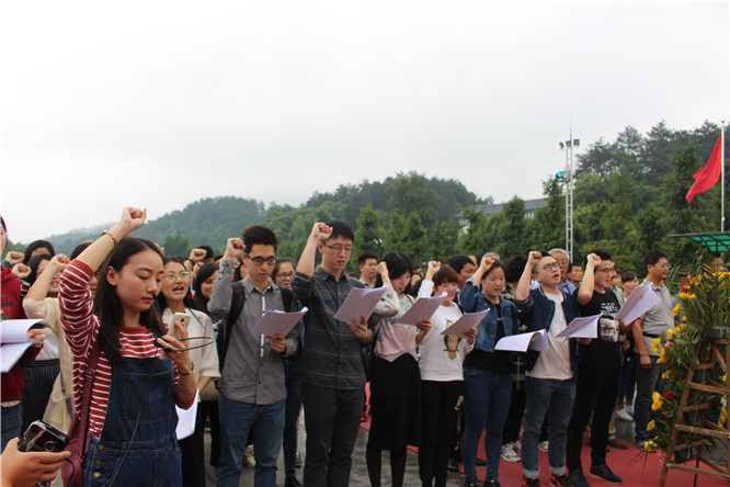 中午12点30分,同学们便准时在湘大体育馆集合,集体乘坐大巴车前往韶山。在约一个多小时的车程以后,队伍来到了目的地——韶山。在当地导游的带领下,队伍首先去往了广阔雄伟的毛泽东铜像广场,全体人员在毛主席的铜像下宣读入党誓词,大家精神抖擞,彰显作为年青党员应有的风采和朝气。每一位学生脸上严肃的神情都表明他们对党的坚定信念和为党的事业奋斗终身的决心。仪式结束后,全体学生在铜像前合影留念。