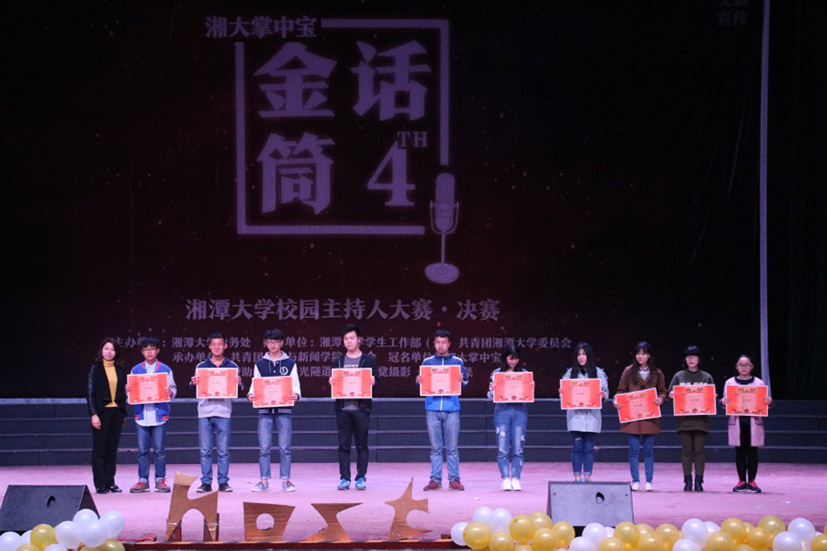 颁奖典礼在观众的掌声和欢呼声中拉开了帷幕,亚洲精品国产精品童真教授为“铜牌主持人”获得者叶童颁奖,湘潭大学教务处副处长王协舟老师为“银牌主持人”陈宇娟颁奖,“金牌主持人”则由湘潭大学副校长刘建平教授为其颁奖。同时,获奖选手与颁奖嘉宾合影留念。至此,湘潭大学第四届“金话筒”主持人大赛决赛暨颁奖典礼圆满结束。
