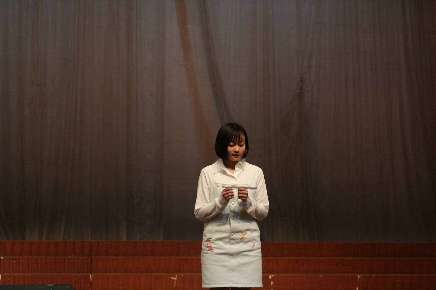 参赛选手早早地在报告厅等候,他们来自各个院系,有文学院、数学院、化学院、历史院等。通过选手们的表现,我们也发现以往认为“主持只是文科生的专长”的想法存在着偏见,不少理科生也是伶牙俐齿、思维敏捷。评委团由四人组成:范靖、张弘靖、屠成佳、陈贺,他们都是大三的学长学姐,主持过校内的各类晚会活动,具有相当丰富的经验。