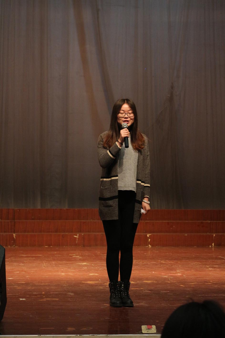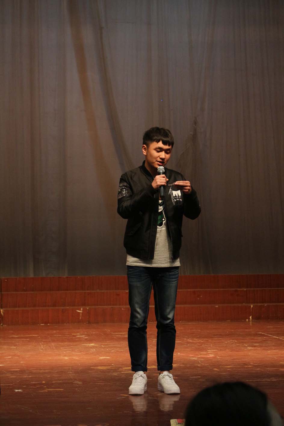 接着上场的是来自商学院的肖哲,天生雄浑的嗓音为他的表演加了不少分,而他稳重的台风也是他表演的一大亮点所在,赢得了评委和其他选手的肯定。