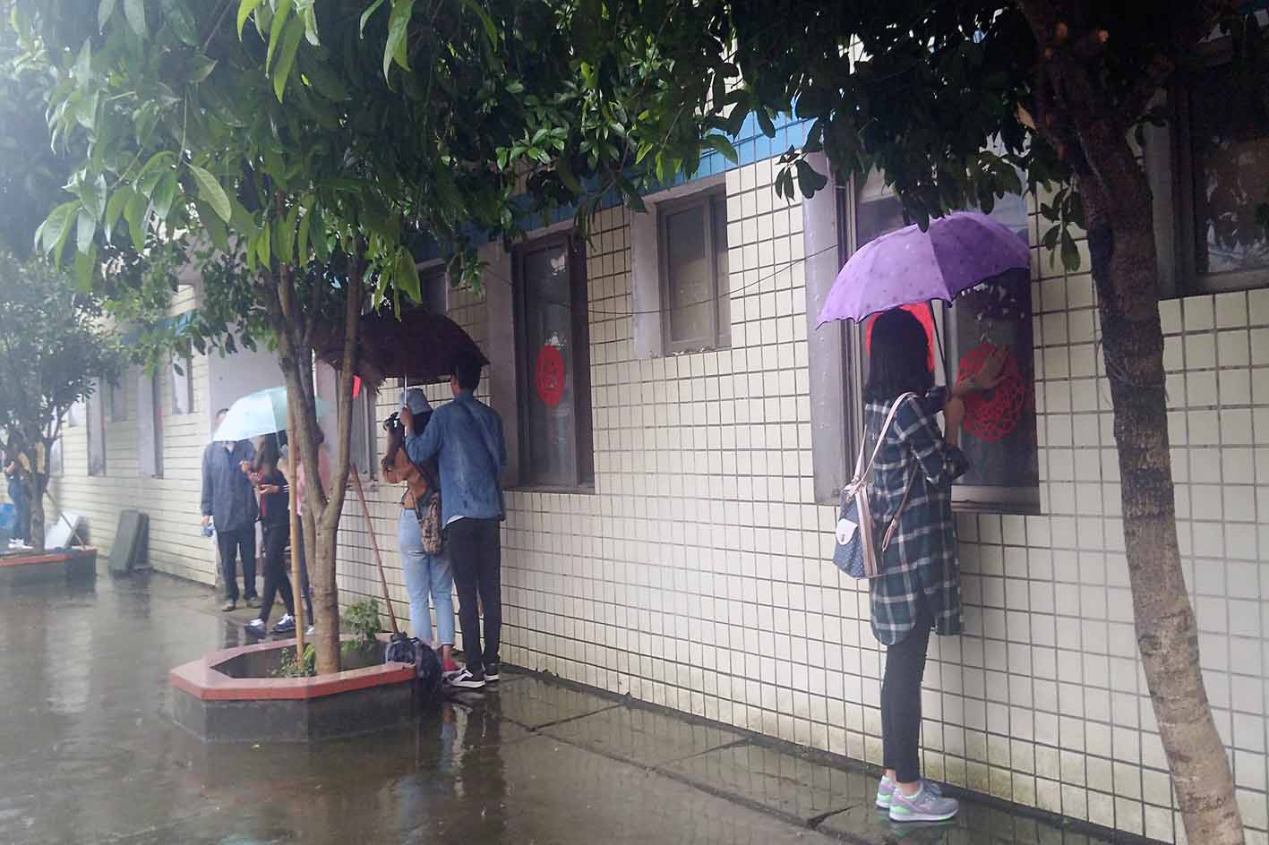 天色已晚,再加上大雨,刘院长担心志愿者们的安全问题觉得可以取消节目表演,但志愿者们的热情难却,最终原定的露天表演改在食堂二楼进行。