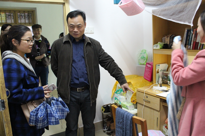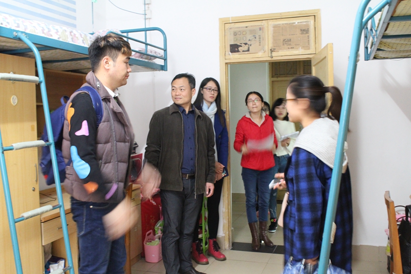 院领导先后走访了我院学生所在1、11栋宿舍楼。在学生寝室里,老师们与学生亲切地交谈,了解寝室卫生打扫及检查情况,督促学生积极保持寝室卫生。同学们寝室内物品摆放较为整齐,地面干净整洁,寝室内装扮温馨舒适,良好的卫生状况得到领导的一致赞赏。每到一处,领导都仔细查看寝室的各个角落,特别提醒大家注意冬季用电安全和卫生死角的清洁。