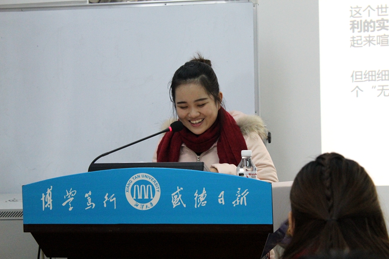 同学们怀着求知的热情,早早到达了会场,首先上场的是2015级亚洲精品国产精品新闻传播学专业的陈云霞同学,她带来的是自己在湘大几年学新闻的体会。她带着批判的眼光,解读自己眼中的新闻学和新闻理想,引发全场的热切讨论。讲罢,杨文博主席首先对陈同学的思路和ppt提出了修改意见,唐晓玲老师上台整体点评了陈同学的发言,鼓励大家多思考但要保持思想的正面性,多多传播正能量。唐老师还以自己的亲身经历告诫大家要加强各方面知识的学习,克服畏难情绪。