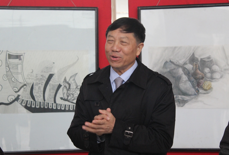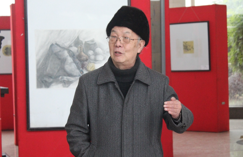 接着,周小愚老师首先讲话,他对同学们的画作予以肯定,对文新院和艺术院联合举办画展的形式,并坚持到第四届予以表扬,最后祝愿画展圆满成功。