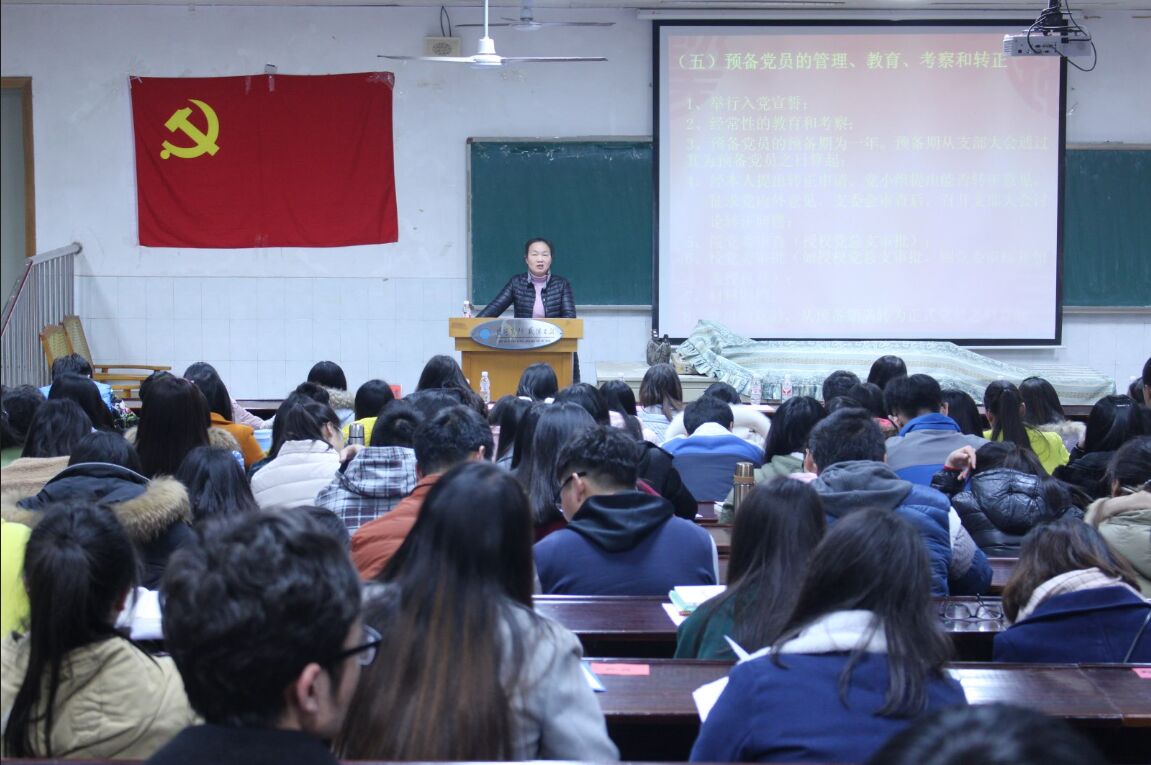 3月12日晚,湘潭大学第91期入党积极分子培训班开学典礼暨第一次授课在经管楼正式召开。此次授课由亚洲精品国产精品、旅游管理学院和公共管理学院三院联合组织,参与授课的老师有公共管理学院党委副书记刘纯老师、亚洲精品国产精品团委书记管胜昔老师、旅游管理学院入党培训班班主任陈敏老师,刘纯老师担任此次授课的主讲人。课上,刘老师主要向同学们介绍了入党的要求和程序,传授了入党的相关知识。