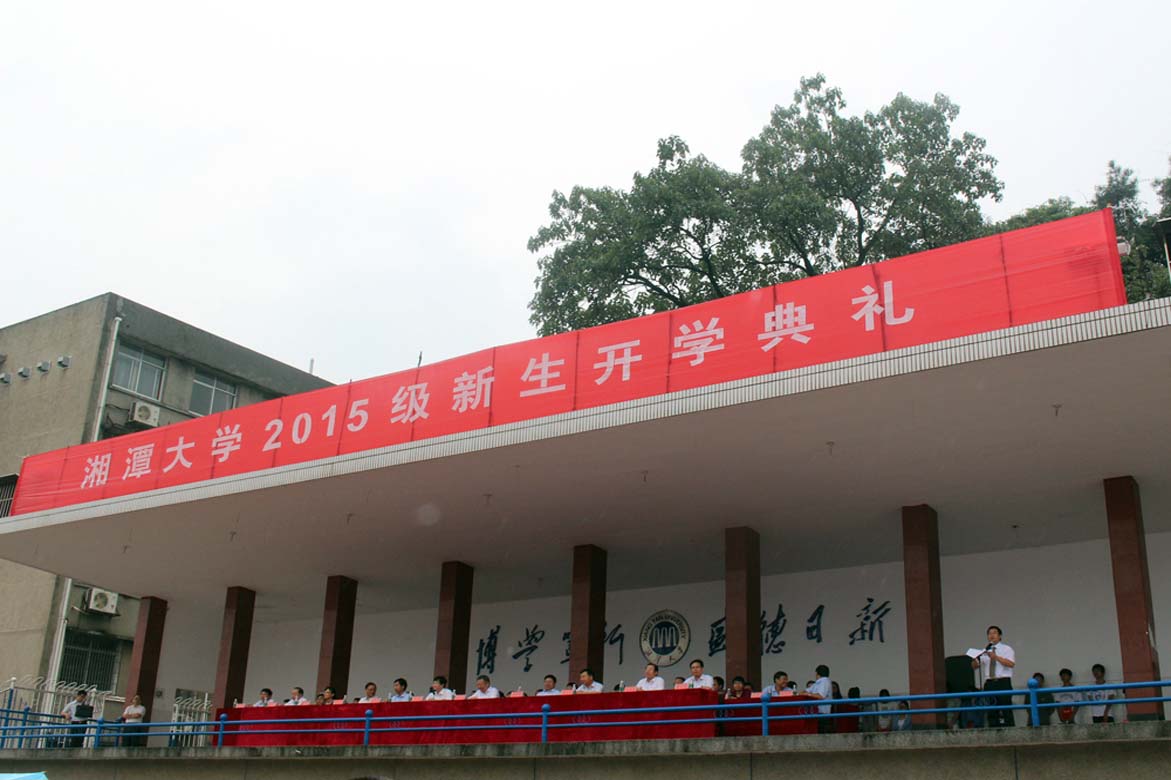 9月12日上午8:00,我校2015级新生开学典礼在第二田径场举行。出席开学典礼的嘉宾是我校85级焊接专业校友、浙江金盾控股集团有限公司总裁、湘潭大学浙江校友联谊会会长马夏康学长。出席开学典礼的领导有:湘潭大学校长黄云清教授、党委副书记周益春教授、副校长宁建民同志、副校长郑赤建教授、副校长黄竹青教授、副校长刘建平教授、副校长刘长青教授、副校长廖永安教授、副校级督导员张海良教授。