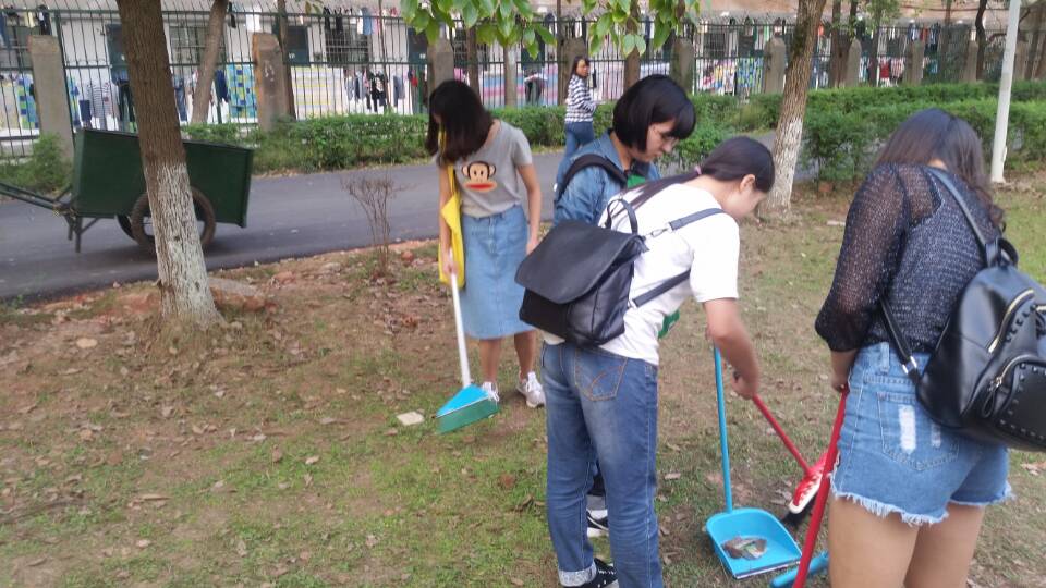 学员们提前准备好了清扫工具,在实践中,做到了有理有序,一丝不乱。大家对活动都十分积极,三两一组,通过协作进行清扫,不放过每一个角落,力求将草坪清扫得干干净净,给同学们留下一个整洁舒适的环境。在活动中,偶尔有不容易清扫干净的地方,大家便协调分工,积极合作,充分利用手中的工具,将垃圾清理掉。