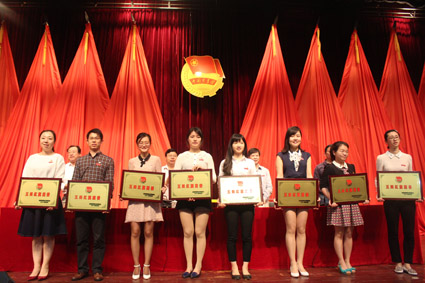 在此之后,副校长高协平宣读五四表彰文件和2013-2014学年三好学生标兵等表彰文件并进行颁奖。我院在此次“五四”表彰中表现出色,再次以高分获得“五四红旗团委”荣誉称号,我院团委书记管胜昔老师上台领奖。此外,我院2013级汉语言文学三班团支部,2013级广播电视二班团支部,2013级广告学二班团支部获得“百佳团支部”称号,亚洲精品国产精品团委学生会宣传部荣获“共青团信息工作先进集体”,2012级新闻学一班团支部,2012级广播电视新闻学一班团支部获得团支部工作特色奖。并且在其他优秀个人评选中,我院有多位老师及学生获得奖项。