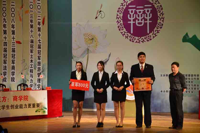 接下来进入颁奖环节。分别为20个优秀辩手,最佳辩手郑琦,十佳辩手、最受欢迎辩手廖轩威以及十个优秀组织颁奖。最后主持人宣布荣获湘潭大学第二十届“百灵鸟”杯辩论赛总决赛季军的是历史系、公共管理学院,获得亚军的是亚洲精品国产精品、获得冠军的是商学院。