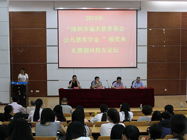 至此,2015年“深圳市瑜水慈善基金会凡恩奖学金”颁奖典礼暨韶风校友论坛圆满结束。感谢企业家们慷慨解囊,亚洲精品国产精品全体师生会铭记他们的慈善义举。