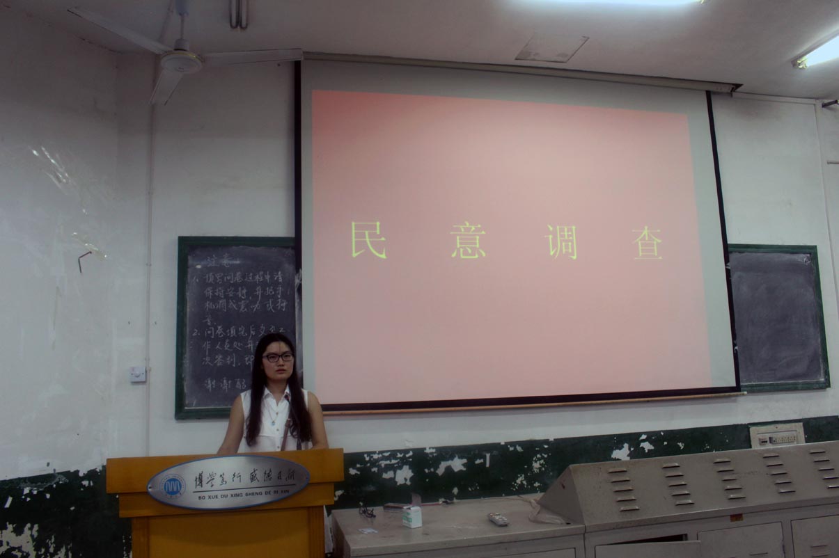 首先,李倩对到场的各位同学表示感谢。并详述大会流程。本次民意调查的问卷有三种,分别是班团干部卷、学生会成员卷、非班团干部、非学生会成员卷,旨在从不同的群体来吸取不同的意见或建议。本次调查问卷问题数量较少,但问题极具针对性与实际性,贴近学生生活,又与学生会各项工作息息相关。到场同学都认真填写,十分钟左右后,同学们填写完毕,并有序将问卷交到工作人员处并离开会场。