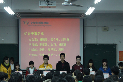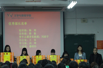 党委唐春副书记宣读表彰决定。公布优秀部门,优秀部长,优秀干事,并为他们颁奖。其中,组织部、学习部、生活部、纪保部文娱部、公关部被评为“优秀部门”。
