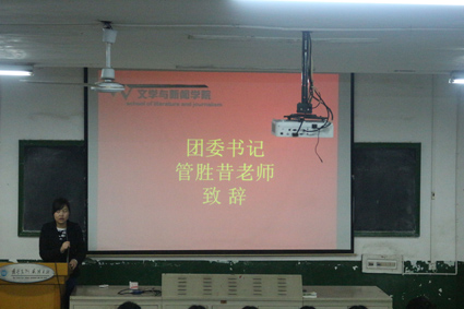 首先,我院团委书记管胜昔老师致开场词。管老师对于学生会上学期工作的顺利运转向学生会全体成员表示了感谢。同时,针对上学期工作中的一些不足之处她也提出了自己的建议,并鼓励同学们努力把自己的想法付诸实践,充分表现青年人的活力。谈完工作的事情,管老师还叮嘱同学们勤于锻炼,保重身体。