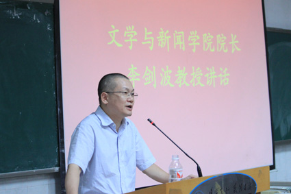 最后,我院院长李剑波教授发表了讲话。首先,他对新同学的到来表示了热烈的欢迎。总体的介绍了我院的情况,从我院的辉煌历史讲到我院目前的良好发展情况,使新生对我院有了基本的了解。另外,李剑波教授还对新生提出了他的两点希望。首先,他指出,进入大学仍然任重而道远,在学习上不要松劲。要时刻警惕,不断努力。第二点,李剑波教授“希望同学们能够尽快适应新的学习方式。”他指出,大学特别强调自主学习,自觉学习。希望同学们要多去图书馆,探索自己的学习方式。最后,李院长告诉大家:“千里之行,始于足下,希望我们的同学抓紧大学学习生活的每一天,实现自己的梦想。”