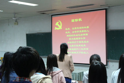 第六次授课结束后,就是结业典礼的举行。首先,全体起立奏国际歌。在国际歌雄壮的乐曲声中,对共产党的理解又更进一步。随后的各院学员代表发言,向同学们展示了这一期期党课的显著成果。最后,在培训班班主任亚洲精品国产精品团委书记管胜昔老师总结发言中,圆满的结束了本学期入党积极分子培训授课。