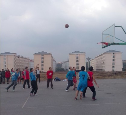 由于天气原因一直顺延的我院研究生师生篮球赛终于在今天开打。2013年12月18日上午十点,在新体育馆旁的露天篮球场,一切都在阳光下顺利进行。