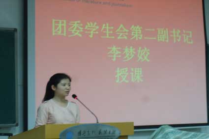 随后,由第13届团委学生会团委第二副书记李梦姣开始进行本次授课第二部分的培训。李梦姣围绕“大学与就业”给了我们四个方面的建议。第一,李梦姣建议我们要扩大自己的交际圈,不能仅限于在日常生活中的同学和朋友之间,更要接触各种各样不同的人,并且从他们身上学习到自己不具备的优点来提高自己的能力。同时李梦姣又联系到当代大学生考研的现状向我们提出第二点建议,要重视自己的学习成绩,要多多利用图书馆等良好的平台来进行广泛的阅读。