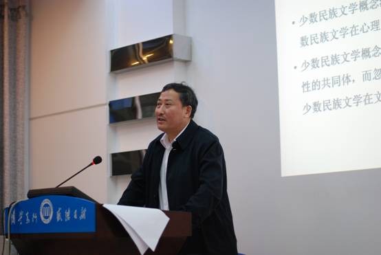 讲座中,钟进文教授向同学们介绍了多民族文学共同发展观(或多民族文学史观的建构)和中国当代文学史书写中的“少数民族文学”。他指出在中国当代文学史在新时期30多年的编写著述过程中,少数民族文学的历史叙述从“有意”叙述到“有限”叙述,再到“差异”叙述最后至“零叙述”的巨大变化,接着他分别此从分别从命名、文学史地位、研究者处境等几个方面,分析了少数民族文学在当代文学史书写中逐步被“他者化”的原因。