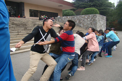 10月20日下午2:30,我院团委学生会心理部在俱乐部外组织拔河比赛,13级新生以班为单位角逐冠军,最终13新闻一班脱颖而出夺得第一,13广电二位居第二,13中文一班摘得第三。