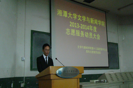 10月19日下午14:00,我院于北山一阶隆重举行了2013—2014年度志愿服务动员大会。出席本次大会的有我院党委副书记唐春、团委书记管胜昔以及我院第十三届团委学生会主席团和全体青年志愿者代表。